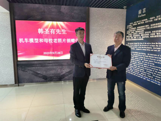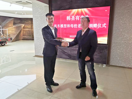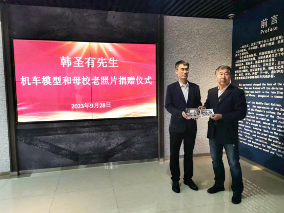 9月28日,吉林铁路博物馆举行了一场特殊的捐赠仪式,我校1972届校友韩圣有向学校捐赠机车模型和母校老照片。学校副校长马卫强,图文信息中心主任李艳杰,产教融合研究院副院长梁晨露及图文信息中心全体人员参加了捐赠仪式,捐赠仪式由图文信息中心主任李艳杰主持。